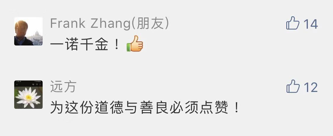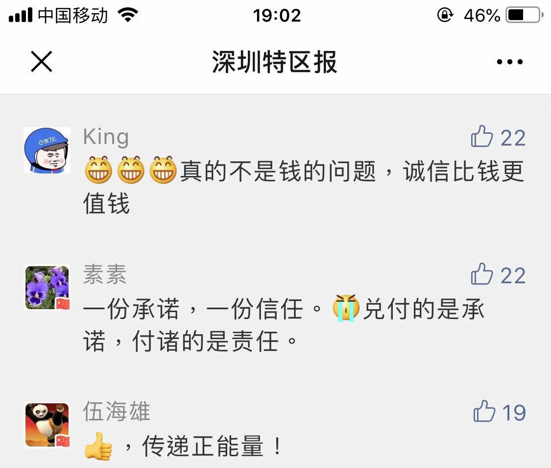 网友表示对双方之间建立起来的诚信与信任感动,纷纷点赞!