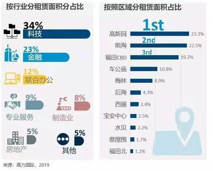 金融行业依然在深圳甲级写字楼市场中扮演着非常重要的角色。尽管市场主要需求来自传统金融行业板块,如目前在福田区的众多证券公司和基金投资公司,他们越来越多地开始关注考虑将南山和前海片区作为下一步选址的目的区域。而作为传统金融企业据点的福田区也可能面临租户搬迁的压力,我们认为业主应该较多地关注金融新兴领域如金融科技行业等,这些都或将成为未来金融行业写字楼需求的增长点。