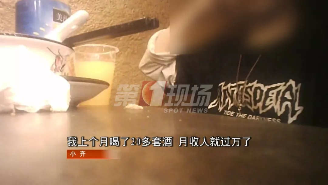 接单后,可以叫其他女孩过来陪酒,业内俗称“女站”,“女站”喝一套酒,可以赚38块8,小齐就是其中一位,这样她可以做到月入上万。