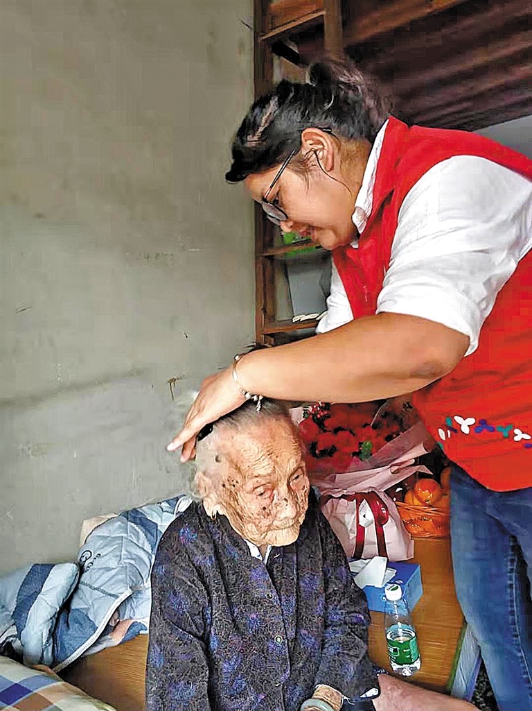 采访当天,老人看到来了这么多人,以为又是政府工作人员来慰问她了,好奇地问外孙女:“今天是过节吗?”原来,逢年过节陈汝金都会收到慰问和祝福,社区工作人员和社康医生也会经常上门和她聊聊家常,了解老人家的身体状况,因此老人对党和政府送慰问送祝福一点都不陌生。去年,陈汝金老人刚满百岁,凤凰社区党委还专门组织大家来到老人家中,为老人庆祝百岁生日,并送来大家的祝福和问候。