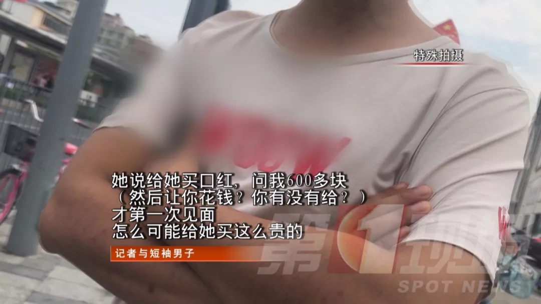黑衣女子送走一位男子后,记者上前与该名男子搭话,男子透露,他和黑衣女子是通过网络聊天软件认识的。才第一次见面,女子就提出让男子买礼物。