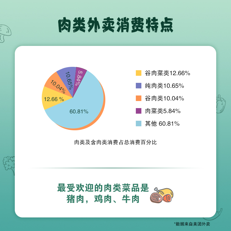 《我国10城市高频外卖消费菜品膳食结构分析》报告研究指出十城市Top50消费菜品中,排第一的均为米饭,深圳居民对米饭及米制品的喜爱全国排名第一;十城中,油条在所有城市都进入了Top50;深圳和上海市民早餐最爱油条;珠海、哈尔滨居民尤其偏爱肉类食品,在订制纯肉类食品的频次,哈尔滨城市排名最高,谷薯类食品对哈尔滨居民的吸引力比全国其他城市低;西安、北京更爱选择主食和菜肴搭配,北京居民对肉类食物的兴趣度比全国其他城市低。此外,整体来看,最受欢迎的肉类是猪肉、鸡肉、牛肉,最受欢迎的蔬菜是白菜、包菜、西红柿。