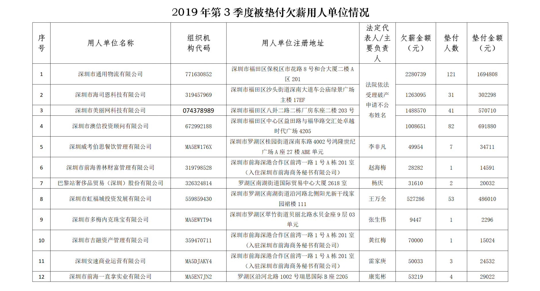 原标题:最高拖欠565万余元!深圳曝光3季度33家被垫付欠薪企业