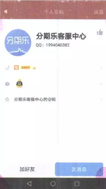 各种信息都对的上,陈林随即添加了对方的QQ(昵称:分期乐客服中心)。