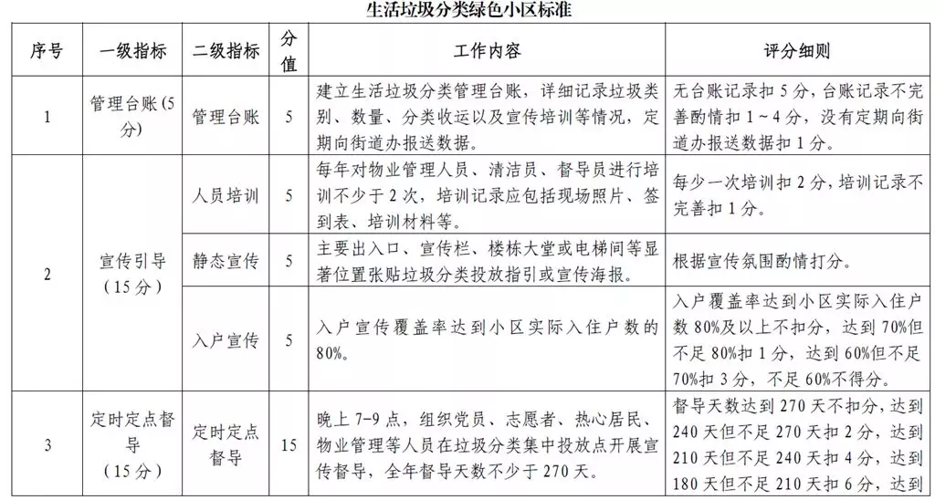 针对单位激励对象不同,《办法》还详细制定了《生活垃圾分类绿色单位标准》《生活垃圾分类绿色学校标准》《生活垃圾分类绿色小区标准》等要求;针对个人激励对象,也明确提出了垃圾分类督导员、志愿者、教师和其他从业人员等不同要求。