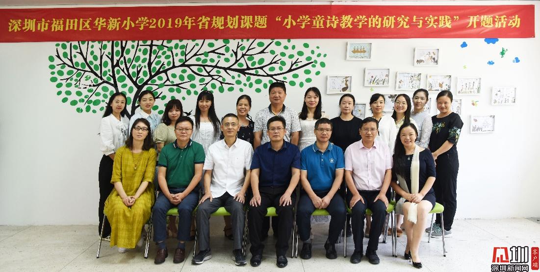 深圳市教育科学研究院副院长、研究员潘希武博士后,深圳市教育科学研究院科研管理办副教研员李贤博士,深圳市福田区教育科学研究院研究员吕庆燕博士,深圳市学生文联秘书长、深圳市福田区教学研究员谢晨,知名诗人、中国诗歌学会会员、广东省作家协会会员朱建业,华新小学张伟校长,童诗课题主持人、华新小学课程部主任邓丽云,以及来自深圳市南山区、福田区7所学校的课题组成员们,出席了开题活动。