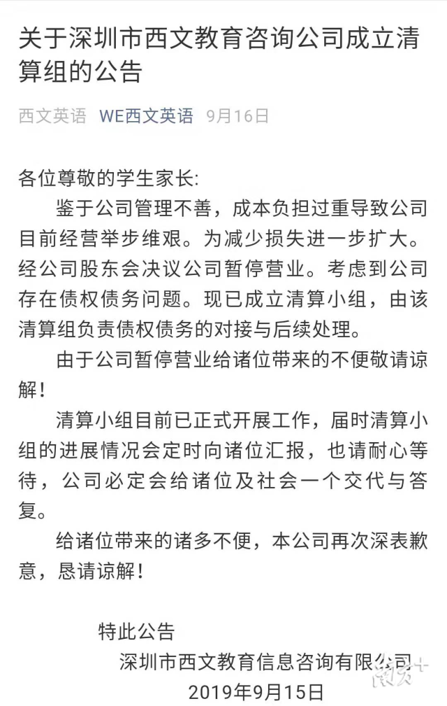西文英语:公司已成立清算组负责学生学费善后事宜