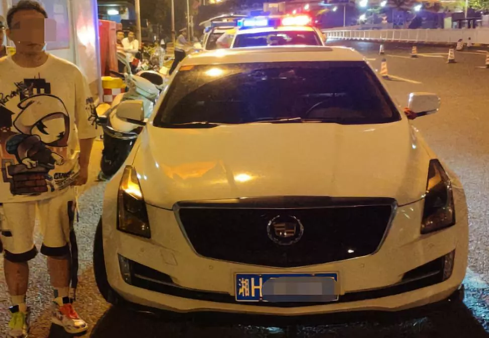 凌晨2时24分许,深圳交警对过往车辆进行逐一排查时,一辆车牌号码为湘H***03的白色凯迪拉克小车缓慢行驶至查车点,现场民警上前示意驾驶员开窗。