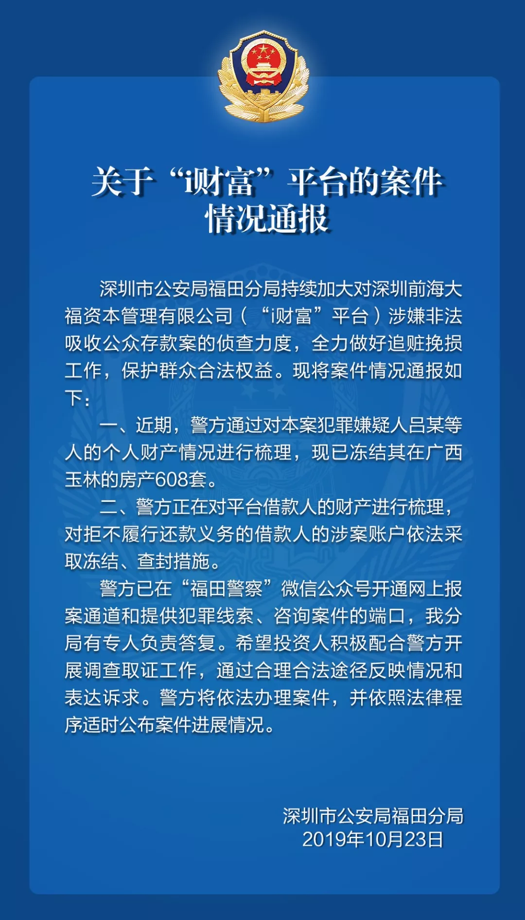 关于“i财富”平台的案件情况通报