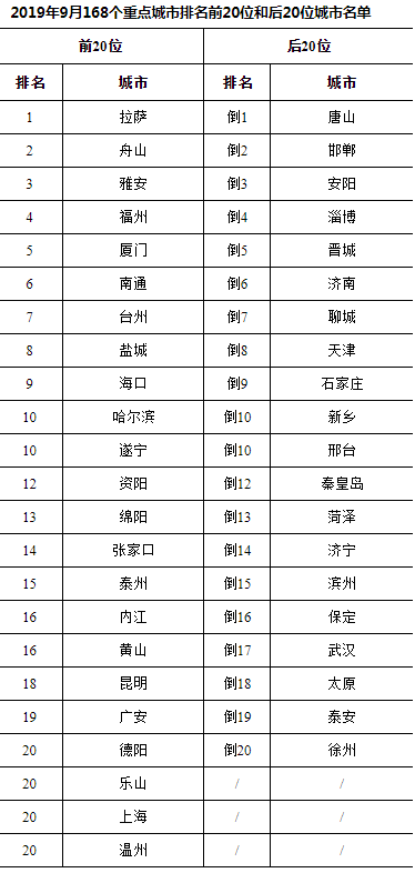 原标题:1-9月全国空气质量深圳排第四,前20名广东占4席