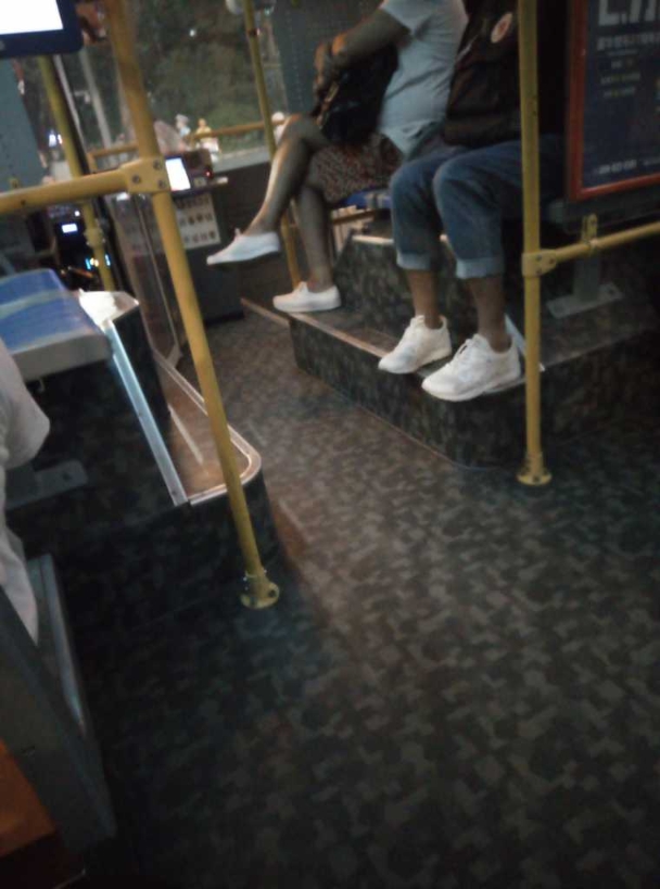 由于这几个座位较高,跷起的二郎腿自然也低不了,伸到了通道中间,有成人的膝盖部高,给通行造成不便。这一举止, 对当事人来说或许只是一个习惯性的动作, 但在公交车这个公共场合,不仅不雅观, 也给本不宽敞的通道设下“障碍”,导致其他乘客通行艰难。