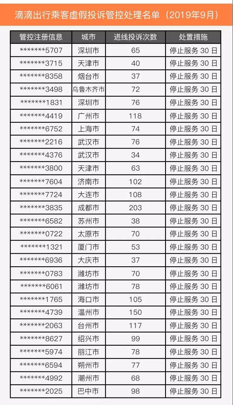 原标题:深圳2乘客虚假投诉被滴滴“拉黑”30日 滴滴公示77名违规乘客和司机