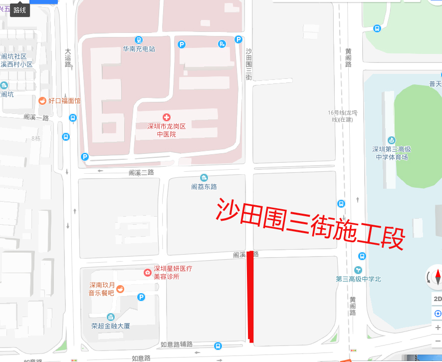 2019年10月28日至2020年1月31日共95天,封闭沙田围三街(如意路口至阁溪三路口段)进行施工。原经此路段通行的车辆,可改沿沙田围二街或周边其它道路通行。