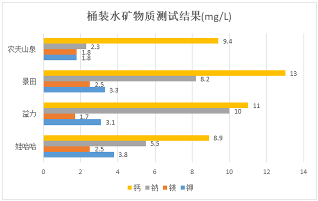 3款饮用天然矿泉水和1款饮用天然水中的矿物质钾、钙、钠、镁是人体所需元素,均符合国家标准及产品标签明示指标的要求,分别是农夫山泉、景田、益力和娃哈哈。