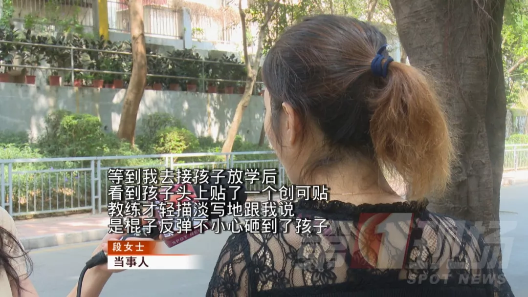监控画面中被教练用棍棒砸中的孩子,正是段女士7岁的儿子小刘。段女士说,孩子在课堂上受伤后,教练和培训机构并没有第一时间通知她,甚至在她来接孩子时,也没有主动告知实情。
