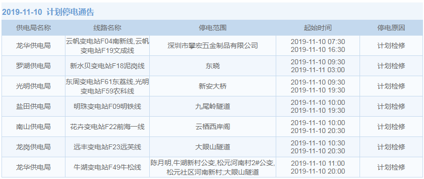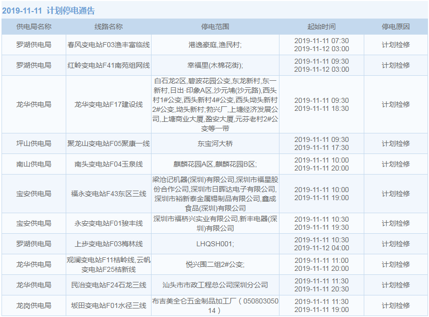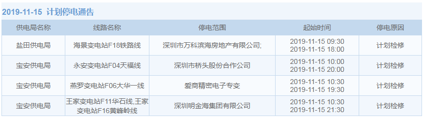 见圳客户端·深圳新闻网2019年10月29日讯 据中国南方电网最新消息:11月1日至11月15日,深圳这些地方将停电!快来看看有没有你家的吧。