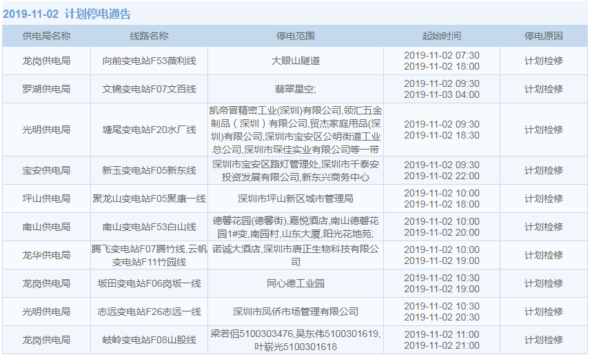11月1日-15日,深圳这些地方将停电(附全名单)