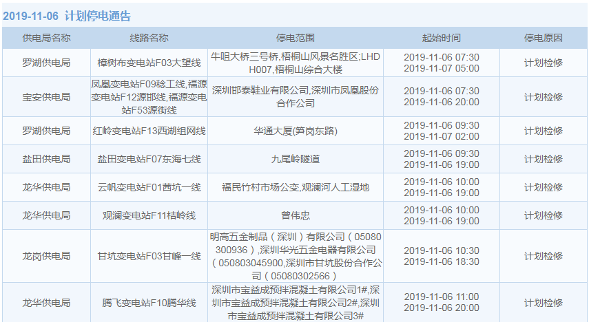 11月1日-15日,深圳这些地方将停电(附全名单)
