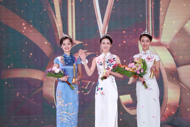 三甲佳丽出炉,9号选手陈佼怡(中)获得2019中华小姐环球大赛冠军。(主办方供图)