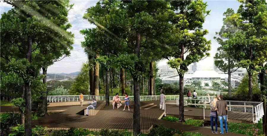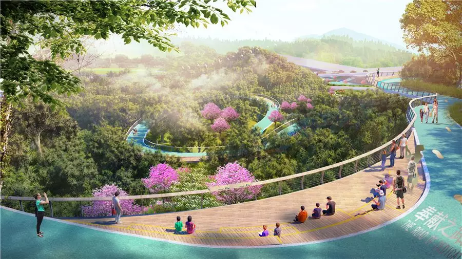 以打造城市与自然交汇、科技与智能彰显、人才与文化融合为原则,通过将大量的人才元素融入绿道景观的方式,打造“串园景连山城,敬人才享自然”的环城绿道典范,彰显深圳爱才、聚才、识才、育才的态度与决心。