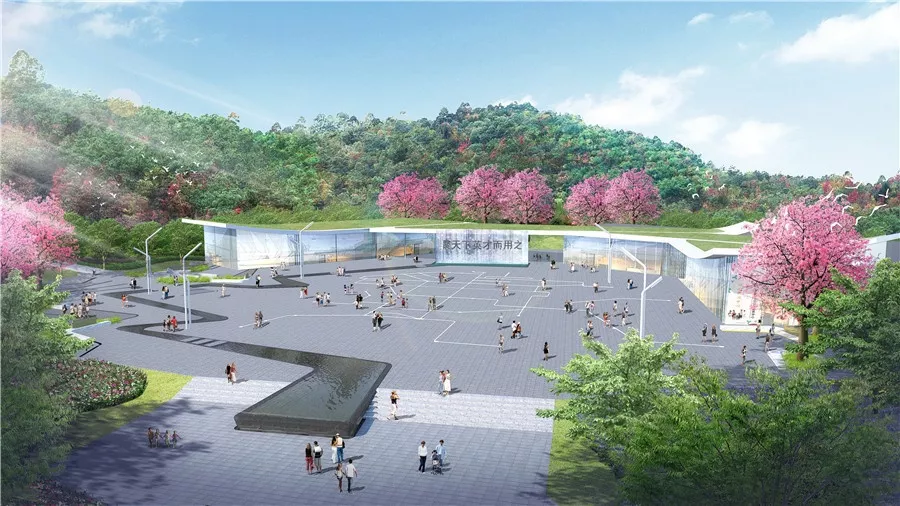 整体规划理念从人才政策的改革开始,经过人才汇聚、培育、拼搏、奉献到蝶变的完整历程,规划了群贤广场、求知花园、拼搏岩岭、奉献之路、蝶变溪谷5大主题景点,讲述了人才来深圳的奋斗故事,同时在登山道沿线建有揽贤台、人才台、聚贤坡等若干休闲小节点,体现“深爱人才,圳等您来”的美好期盼。