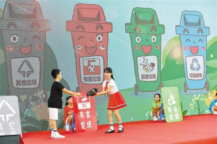 ▲今年暑假,深圳市垃圾分类“小小督导员志愿者”点火行动启动,罗湖区东昌小学1500名学生被聘为垃圾分类“小小督导员”。深圳商报记者廖万育摄