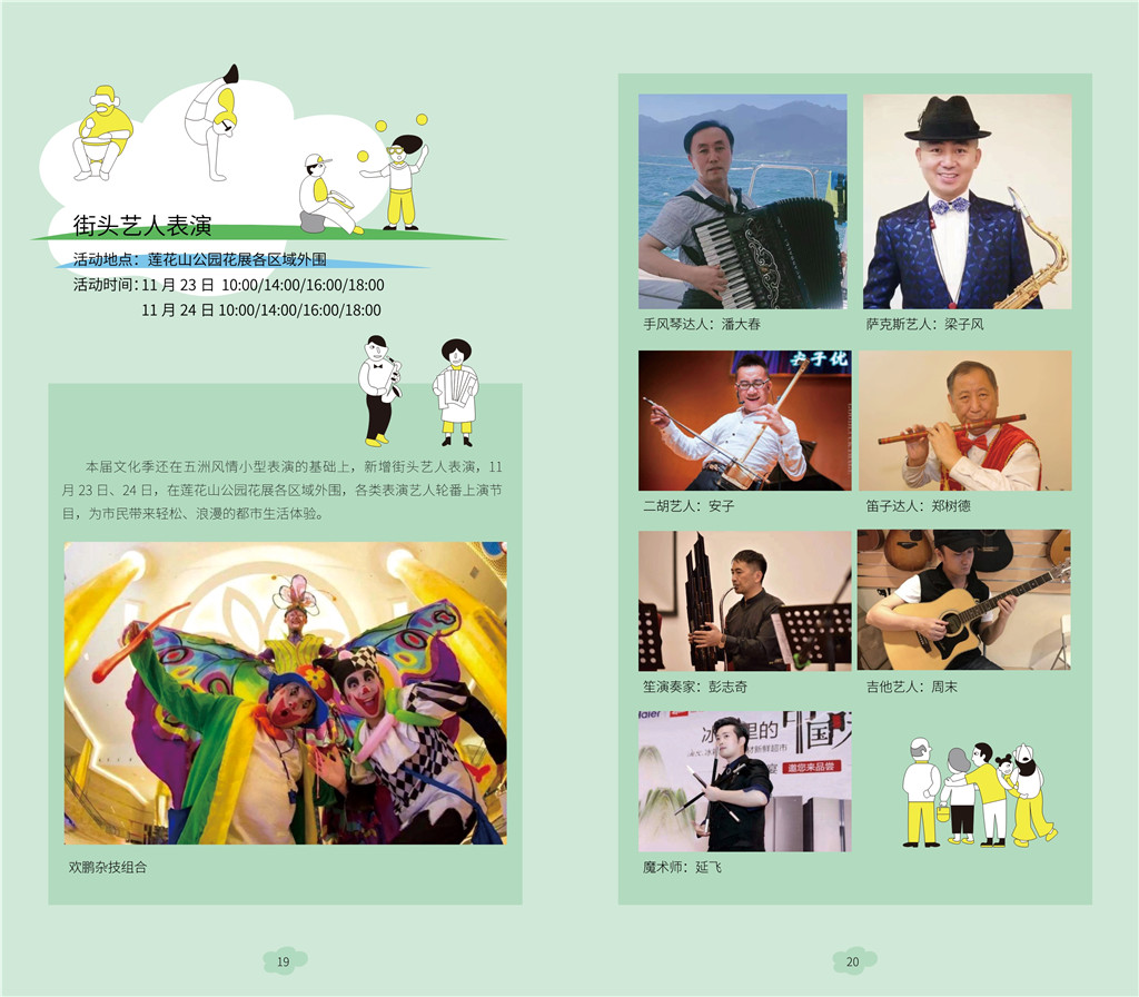引人关注的是,本届公园文化季首次引进街头艺人表演,11月23日、24日,在莲花山公园花展现场,吉他、萨克斯、笛子、笙、扬琴、中阮、二胡、杂技、魔术等各类表演艺人轮番上演节目,为市民带来轻松、浪漫的都市生活体验。