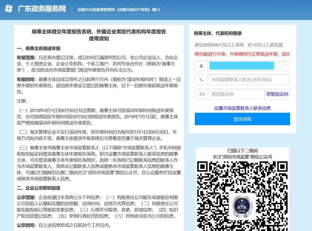 第一步:通过扫描新版营业执照二维码或进入深圳市场监管官微点击“公众服务”栏目下的“商事主体年报”进入手机年报登录界面。