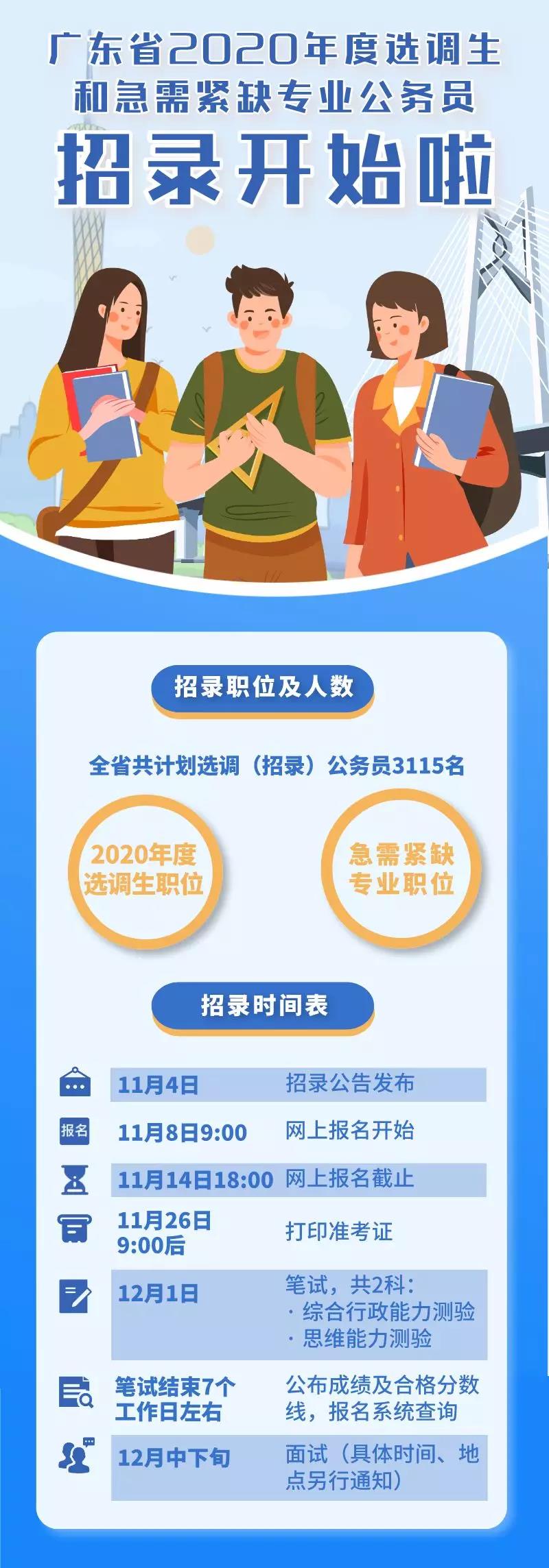 原标题:广东省2020年度选调生和急需紧缺专业公务员招录11月8日开始报名