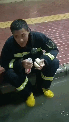消防员们拿筷子的手都在抖,