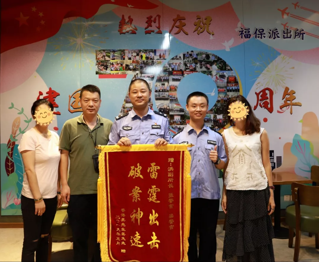 近日,在得知殷某平被绳之以法后,事主的妻子吴太太迅速赶到福保派出所向民警张健赠送锦旗表达感谢,感激之情溢于言表。