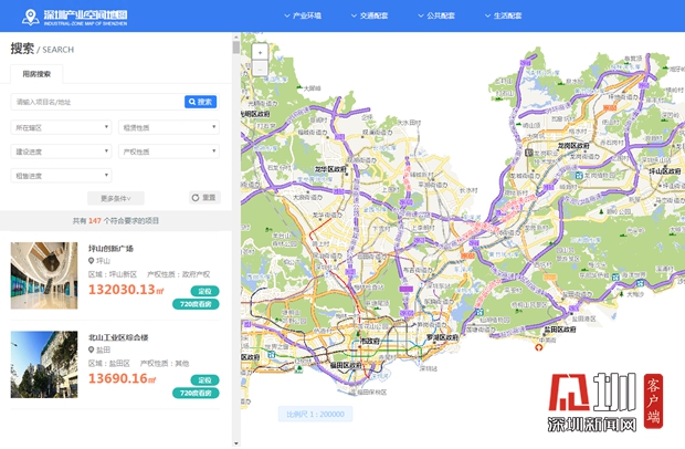 深圳产业空间地图相当直观实用,哪个区有合适的产业用房房源一目了然。