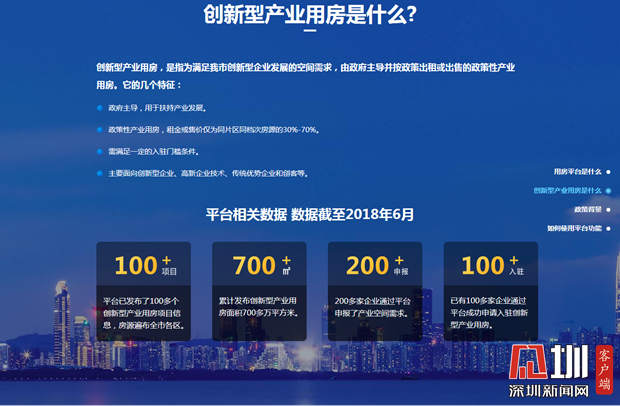 据介绍,平台最大的亮点是汇聚了全市创新型产业用房资源,是深圳市创新型产业用房统一的信息发布和在线申请平台。企业可以在寻找产业空间时享受一系列免费的服务:平台统一受理深圳市企业的产业空间需求申报,并为企业全程免费提供需求跟踪、撮合对接等服务。