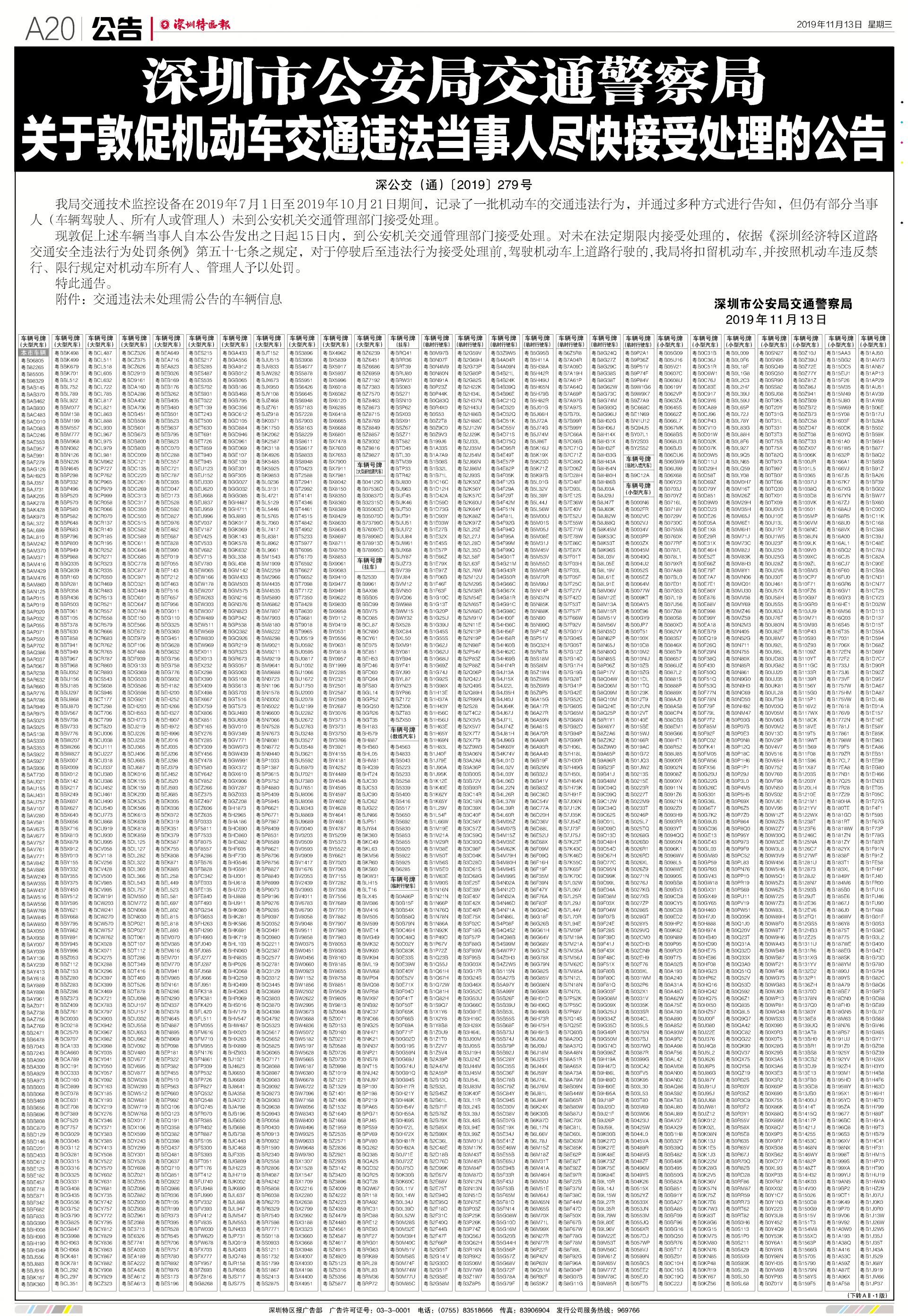 今年7月至10月初,全市机动车被“电子警察”抓拍交通违法行为1342781宗,深圳交警通过多种方式进行交通违法行为告知,但截止至目前仍有部分机动车的非现场交通违法未及时处理。