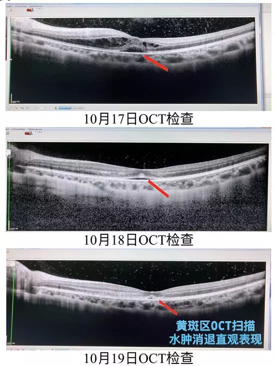 病房立即邀请眼科医生会诊,发现患者出现双眼脉络膜视网膜炎,左眼矫正视力仅剩0.3。经过及时对症治疗,三天后,患者左眼视力由发病初的矫正视力0.3提高到矫正视力0.8,现视力还在进一步恢复中。