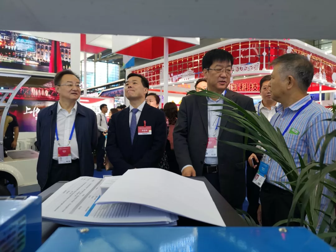 新疆维吾尔自治区政府副秘书长许龙章、科技厅厅长张小雷、科技厅副厅长刘智敏参观新译展区