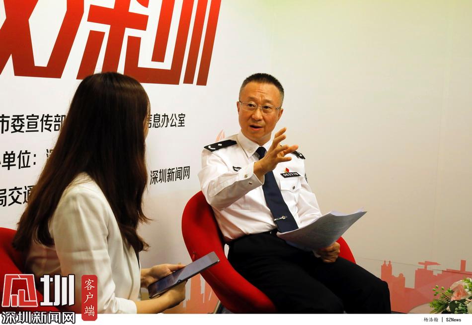 2019年11月15日,福田区,深圳市公安局交通警察局副局长冯新毅在镜头前阐述新交规内容。