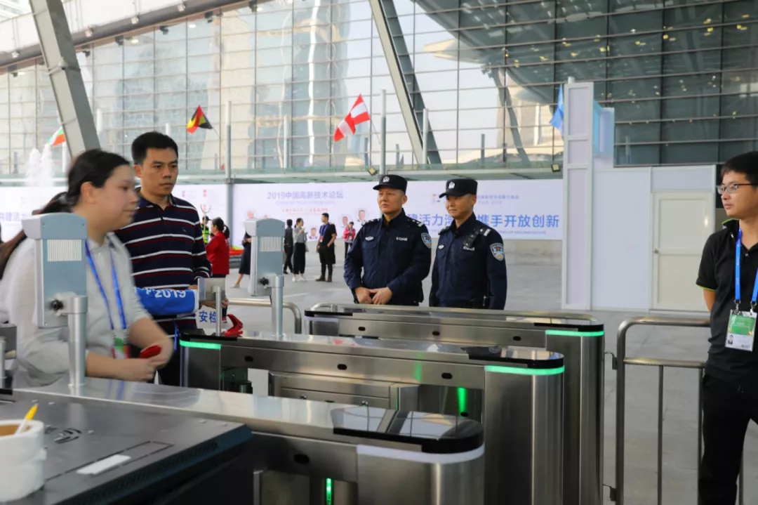 福田公安分局坚持科技兴警、改革强警,以科技信息化手段为支撑点,在会展中心12个安检口设置34个安检门,安装人像识别设备和视频监控,同时严查车辆、人员和物品,严控管制器具和易燃易爆物品等,确保场馆内外防控无死角、全覆盖。
