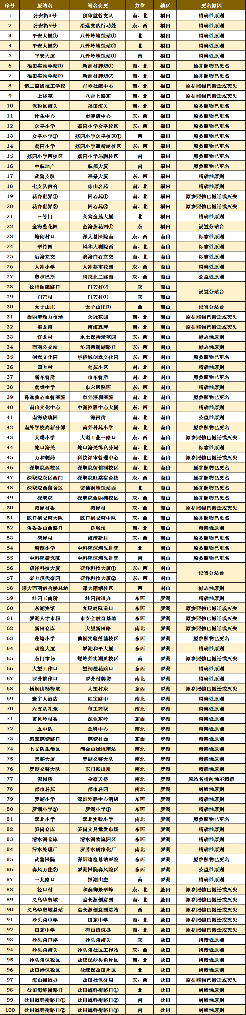 据悉,为向市民提供更准确、更清晰的公交出行指引,深圳市交通运输局广泛收集市民、媒体、各相关部门及社会团体关于公交停靠站站名的投诉与建议,形成了《2019年度公交停靠站更名方案(征求意见稿)》,现征求市民意见。市民如有不同意见,可于11月28日18:00前,拨打12328向深圳市交通运输局反映。
