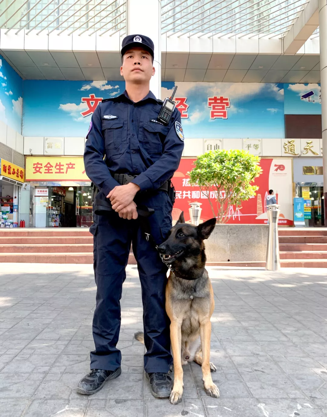 1999年出生、刚满20岁的岳文健,是福田分局机训大队警犬中队的一员。去年刚毕业的他,在今年3月加入警犬中队,成为队伍中最小的队员。