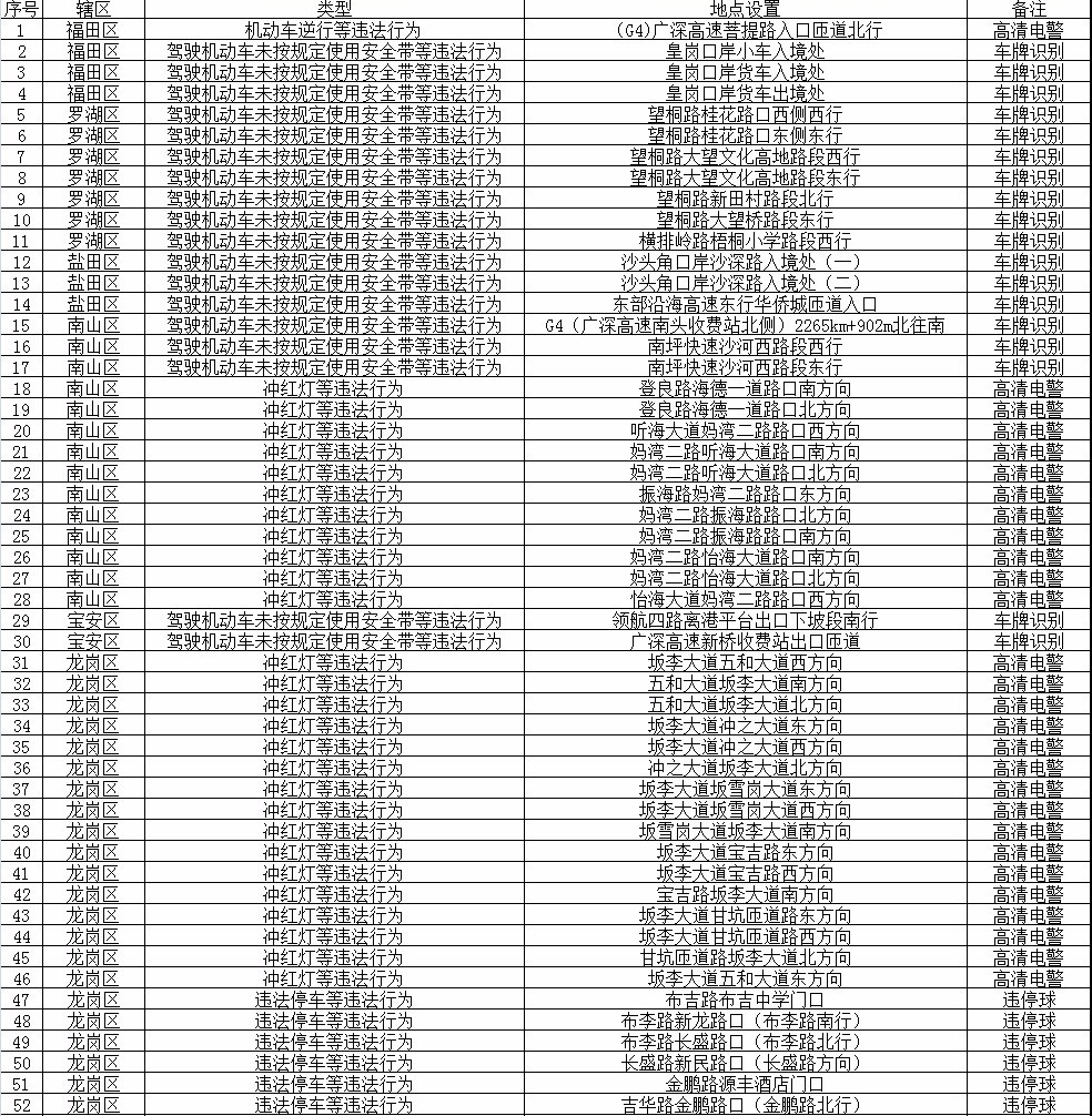 见圳客户端·深圳新闻网2019年11月22日讯 各位司机们注意啦!11月21日,记者从深圳市公安局交通警察局获悉,近日这些路段将启用174套交通技术监控设备,机动车逆行、冲红灯、未按规定使用安全带等违法行为,都会被拍到。