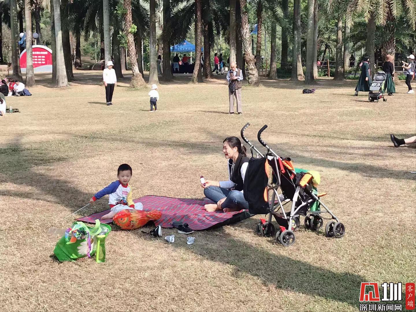 市民在莲花山公园进行亲子活动,草地干净整洁,无留下任何垃圾。