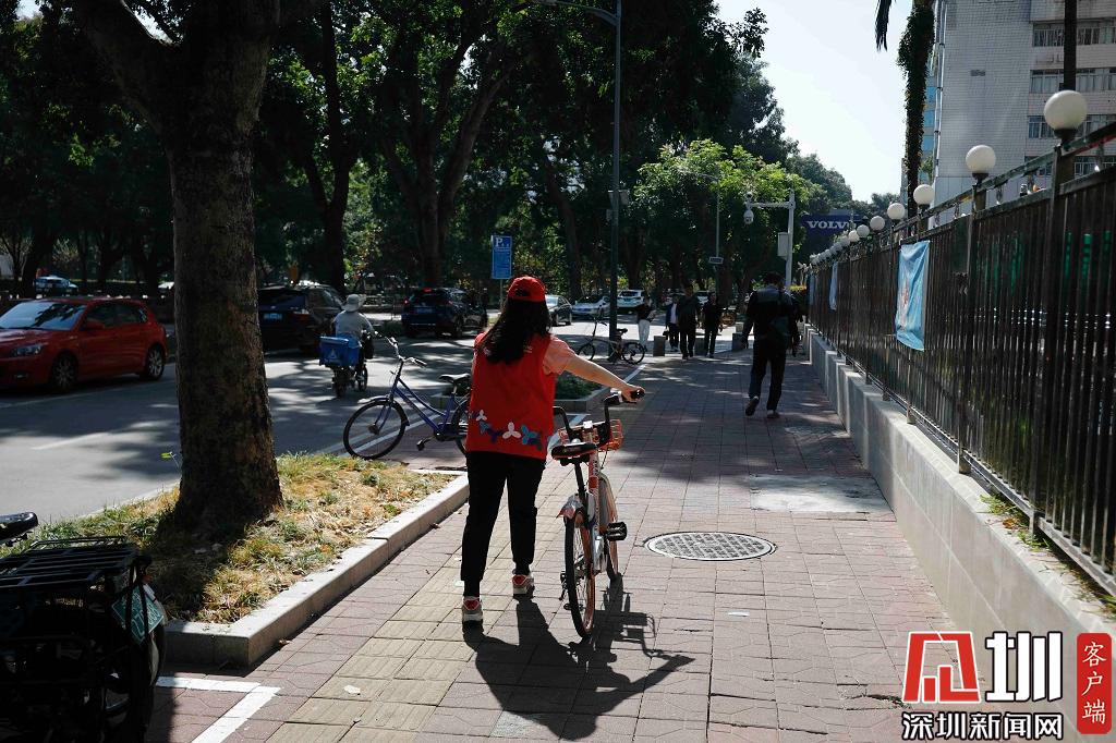 2019年11月22日,福田区,一位义工正在将路边的共享单车摆放整齐。