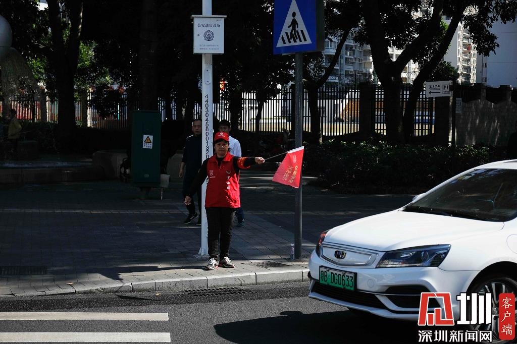2019年11月22日,福田区,一位正在斑马线旁工作的义工。