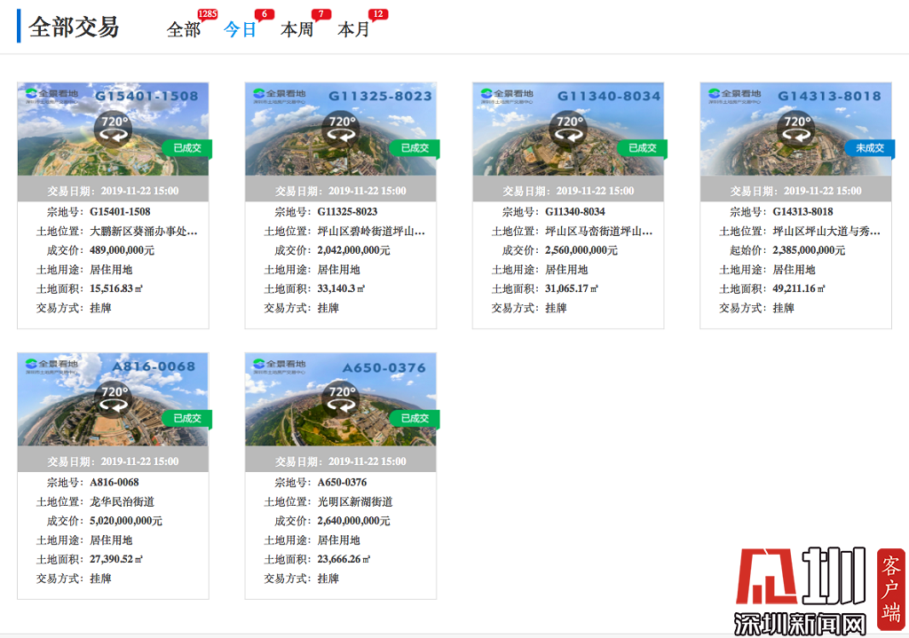 见圳客户端·深圳新闻网2019年11月22日讯(见圳客户端、深圳新闻网记者 潘润华)总价127.51亿!11月22日下午,深圳5宗地成功出让,分别为龙华、光明和大鹏新区各一宗地,坪山两宗地。其中,位于龙华民治街道的A816-0068宗地,由中海企业发展集团有限公司以50.2亿元的价格竞得,成为当天成交金额最高宗地。