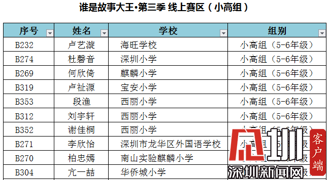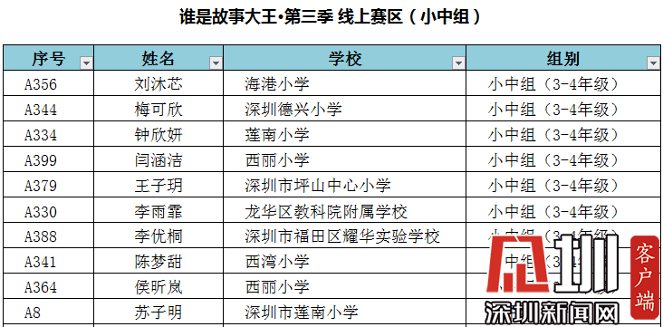 附:“谁是故事大王·第三季”-线上赛区晋级深圳市复赛名单