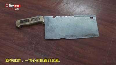 一把明晃晃的菜刀刚好砍进车门缝里。