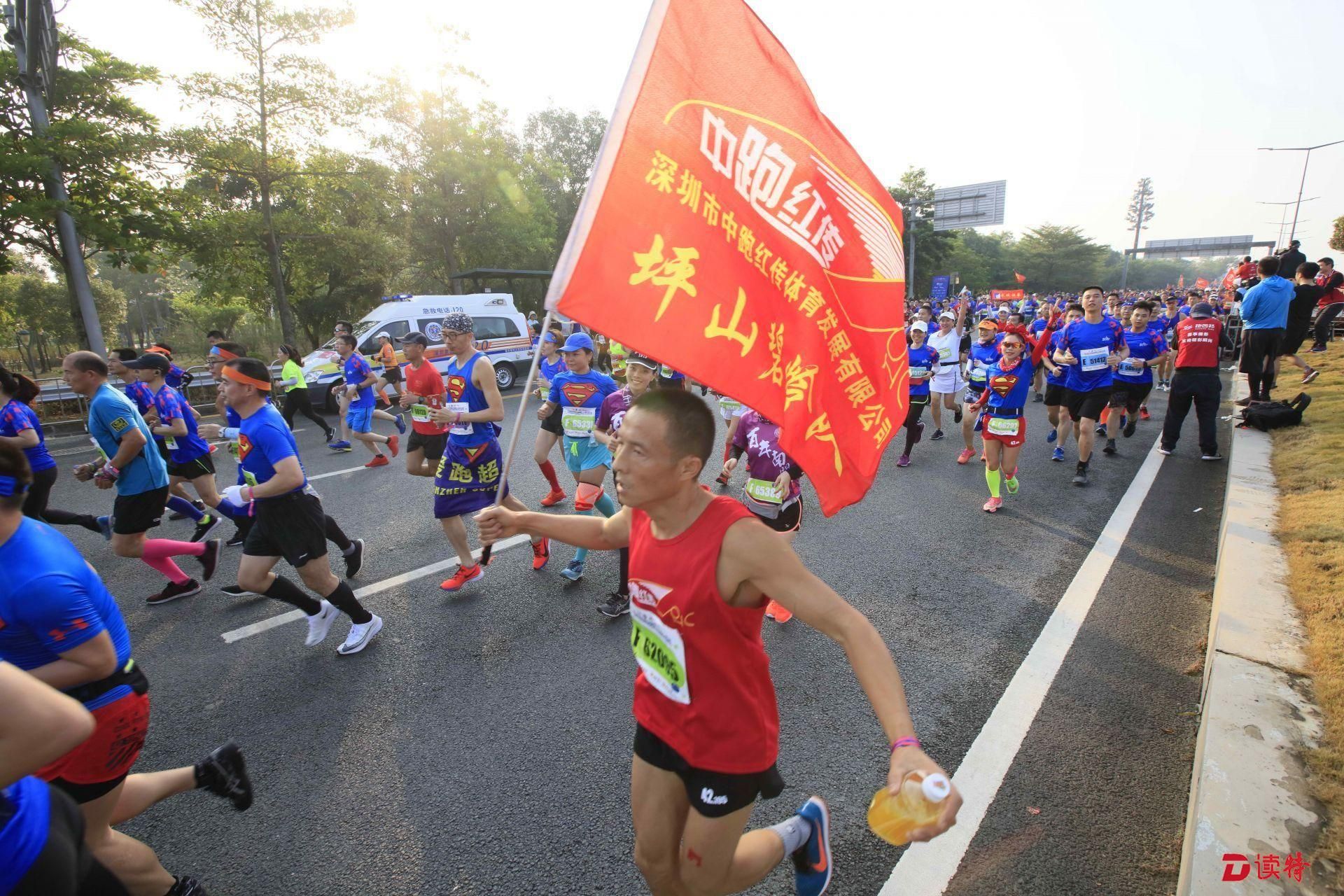 8点鸣枪,1.6万名参赛选手准时开跑,由深圳人才公园东门出发,途径南山区多个地标建筑,向终点华润深圳湾体育中心奔跑。经过一番激烈的角逐,9点过,有选手率先抵达终点,男女组冠亚季军陆续诞生。