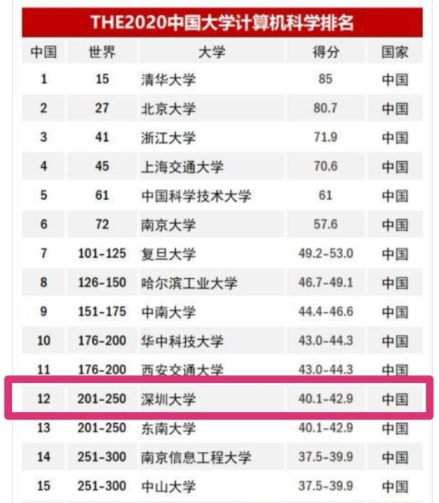 原标题:再升一位!深大计算机科学专业排名位居内地高校第12