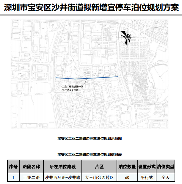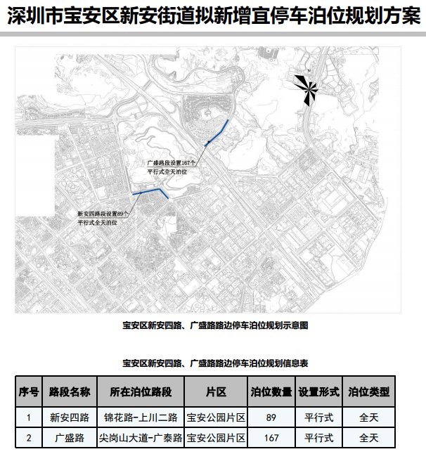 其中,在宝安区3条道路新增316个宜停车泊位、龙岗区23条道路新增890个宜停车泊位、龙华区14条道路新增702个宜停车泊位、光明区9条道路新增305个宜停车泊位、大鹏新区5条道路新增157个宜停车泊位。具体规划方案如下: